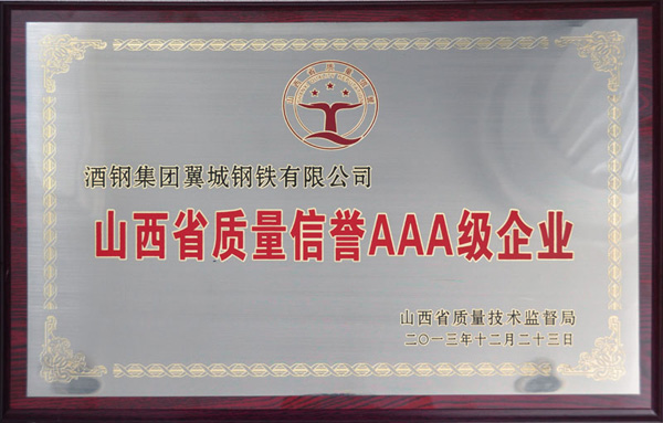 酒鋼日報訊(通訊員 安華)近日,翼鋼公司被山西省質量技術監督局評為山西省質量信譽AAA級企業,所生產的“酒鋼”牌熱軋帶肋鋼筋榮獲山西省名牌產品,翼城縣領導與相關部門人員專程來翼鋼進行授牌。