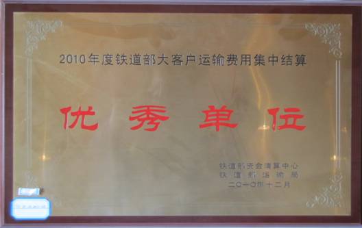 2010年度鐵道部大客戶運輸費用集中結算優秀單位