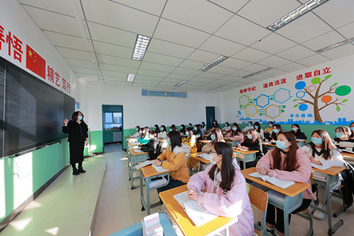 11月15日,甘肅鋼鐵職業技術學院有序復學復課,學生們拿起書本回歸課堂。疫情期間,學院認真落實各項疫情防控措施,嚴格實行封閉式校園管理,取得疫情防控的良好成效。圖為該院師生正在進行課堂教學。張志方 攝